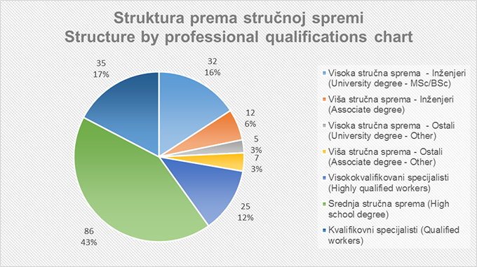 TERMOELEKTRO ENEL AD employs a total of 202 employees of which 44 engineers.